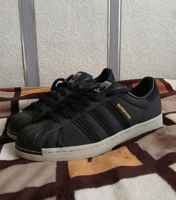 Новые кроссовки adidas Superstar в черном цвете. Состояние - новый. Размер - 43. Купались в качестве подарка в Европе, не подошли по размеру. Лежат на полке, пыльтся без дела. За деталями в личные.