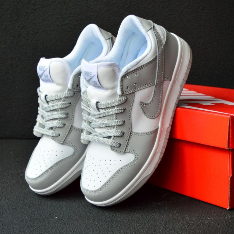 Натуральные кожаные серые мужские с белым кеды nike dunk low retro white gray кроссовки на...