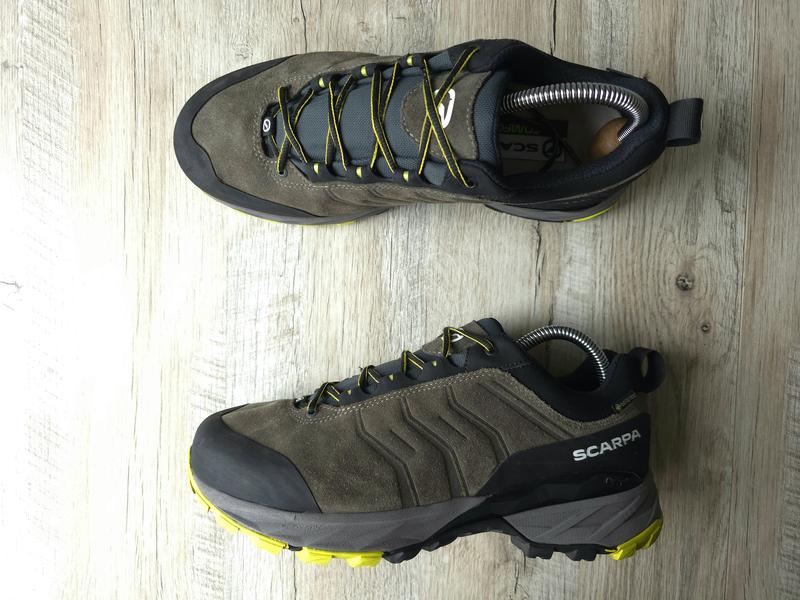 Кроссовки Scarpa Rush Trail GTX на мембране Gore-Tex Состояние отличное, следы использования косметические. Шнуровка была отсутствует. Вставлена другая. Размер указан: EU42 UK8 USm9 USw10 Замер к загибу стельки - 26.5 см Полная длина стельки - 27.5 см Ширина стельки - 9.3 см Легкие, удобные и технические мужские кроссовки SCARPA Rush Trail GTX – идеальный выбор для хайкинга, активного отдыха в горах и прогулок. Они способны поддерживать стопу, не перенапрягая ее, гарантируя непревзойденную стабильность и комфорт. Верх обуви изготовлен из высококачественной устойчивой к истиранию водостойкой замши толщиной 1,7-1,9 мм. В зоне косточек есть мягкие подушечки, защищающие от натирания. Мембрана GORE-TEX позволяет носить кроссовки Rush Trail в любую погоду. Они полностью водонепроницаемы, а дышащая ткань не допустит лишнего потоотделения. Низ подошвы изготовлен из специальной резиновой смеси SUPERGUM, которая гарантирует отличное сцепление, особенно на пятке. Выступы на подошве способствуют торможении на спусках и удержанию на подъемах. Технология IKS (Interactive Kinetic System) помогает улучшить амортизацию и поддержку. Использование: хайкинг, походы по холмам, горные походы, подходы, прогулки в горах с небольшими нагрузками.