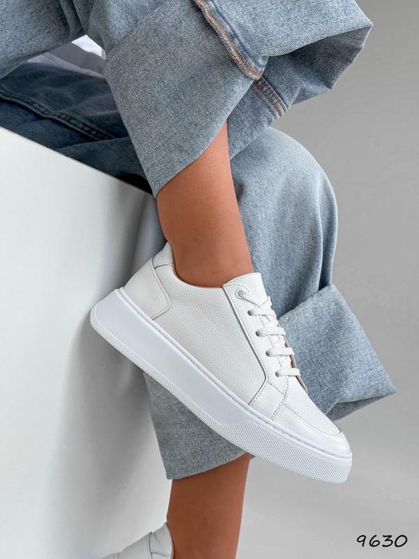 НОВИНКА Кеди жіночі Temis білі, натуральна шкіра Код: 9630 Матеріал: натуральна шкіра (флотар) Колір: білий підошва: 4 см, спереду: 3 см всередині натуральна шкіра Виробництво Україна розмір: 37-40 37-24 см 38-24,5 см 39-25,5 см 40-26 см