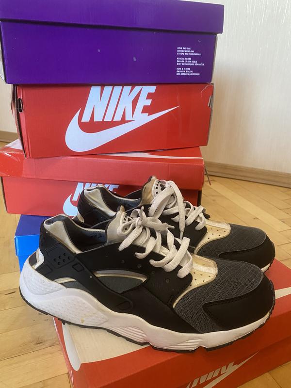 Nike Huarache, чорні Розмір: 44 (28 см) Оригінальні кросівки Nike Huarache. Зручна модель, м’яка підошва, добре тримають ногу. Підходять для повсякденного використання. Верх із дихаючого матеріалу, задня частина з еластичною фіксацією п’яти. Стан: загалом хороший, без серйозних пошкоджень. Є незначна жовтизна на язичках (видно зблизька), на комфорт не впливає. При бажанні можна відмити)