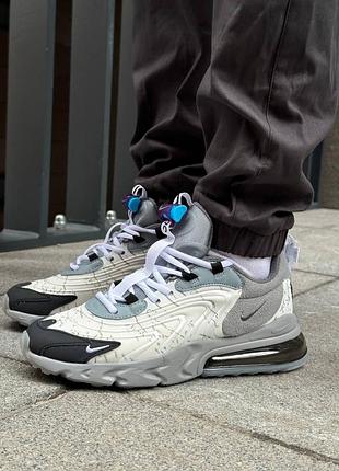 ✔️ Nike Air Max 270 React x Travis Scott 📌 Артикул: S1237 🟢 Материал: Текстиль 🟢 Размеры: 43-27,5 см 🟢 Производитель: Вьетнам 🟢 Фирменная коробка