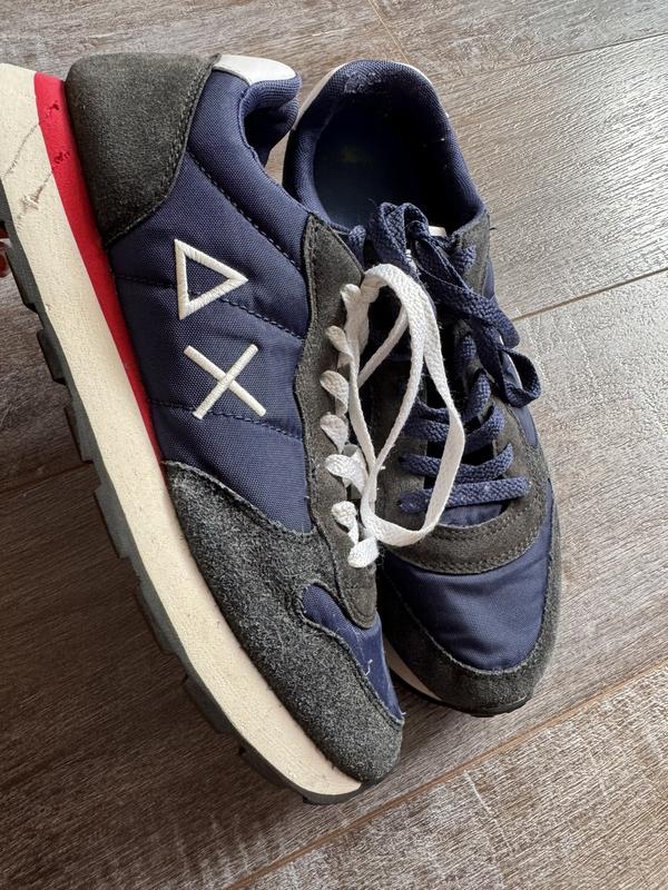 Кросіаки в дуже хорошому стані, Нюанс на останньому фото, зсередини пʼята має протертості, різні шнурки Кросівки Sun68 Tom Solid з темно-синього нейлону та замші. Вишитий логотип збоку, тканинна підкладка та устілка. Двоколірна гумова підошва, висота 3 см.