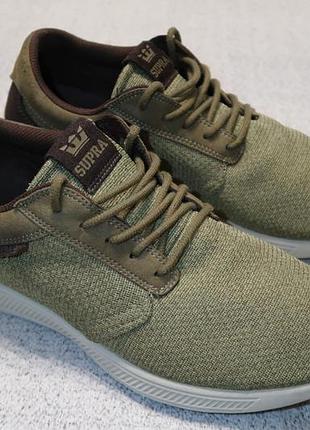 Кроссовки Supra оригинал - 45,5 размер, по стельке - 29,5 см до загиба. Снаружи - натуральная замша + текстиль, внутри - текстиль, стелька - пена + текстиль. Подошва - пена + резина.. Ширина по стельке в самом широком месте - 10 см. Очень легкие, стильные, мягкие и удобные. Отличное состояние. Цена - 965 грн.*