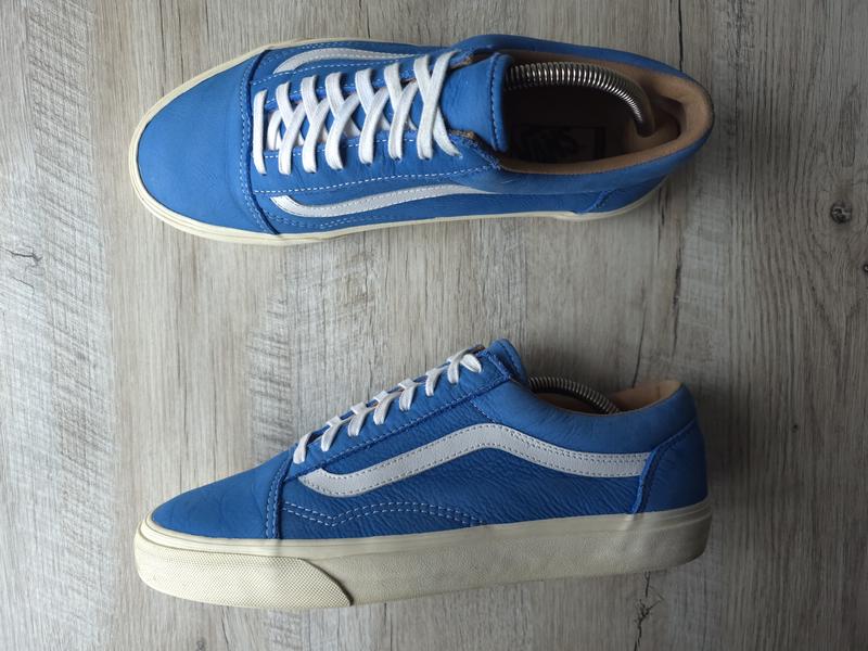 Кожаные кроссовки Vans Old Skool Reissue Classic Leather Blue Оригинальный. Материал верха - кожа Состояние отличное, следы использования косметические. Размер указан US Men10 UK9 EUR43 28 см. Комфортно будет на стопу 27.5 см, возможно на 28 см. Полная длина стельки - 28 см.