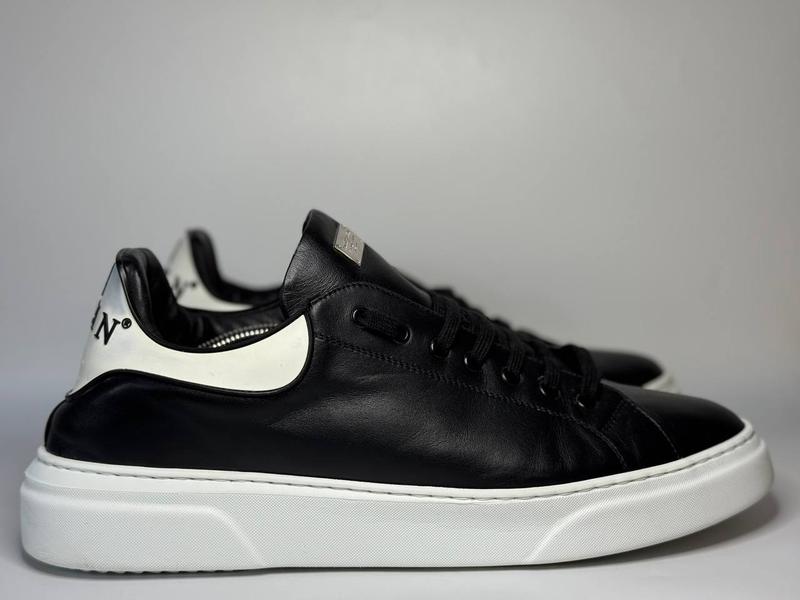в233-200 Кроссовки Philipp Plein Эксклюзивное итальянское качество и узнаваемый дизайн. Черная гладкая кожа в сочетании с белой деталью на пятке и массивной белой подошвой создают стильный контраст. Металлическая пластина с логотипом добавляет роскошный акцент. Характеристики: ✔️ Бренд: Philipp Plein ✔️ Производство: Italy ✔️ Размер: 48 ✔️ Длина стельки: 31 см ✔️ Материал: натуральная кожа ✔️ Состояние: отличное (есть нюанс на фото) ЦИНА: 2 950 грн.