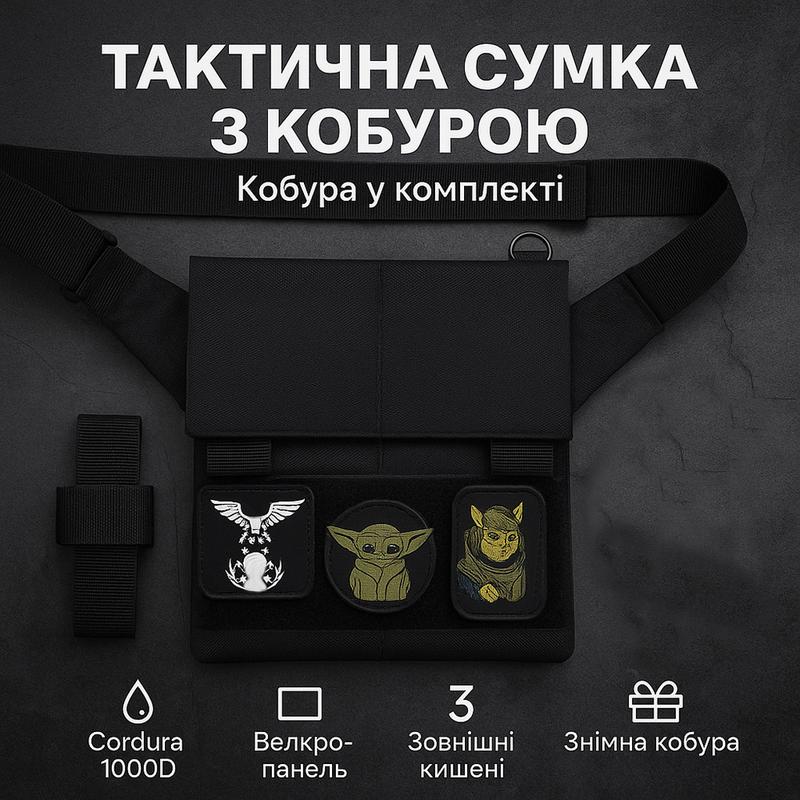 Прочный материал: Cordura 1000D + плотная полиамидная стропа для усиленной защиты. 3 основных кармана для удобной организации вещей. Кобура в комплекте съемная, надежно фиксируется внутри. Патч-панель для любимых патчей, подчеркивающих ваш стиль. Тактические пуллеры для быстрого открытия в экстренных ситуациях. Регулируемый ремень прочный, удобный, подходит для любой телостройки. Размер: 30×25 см