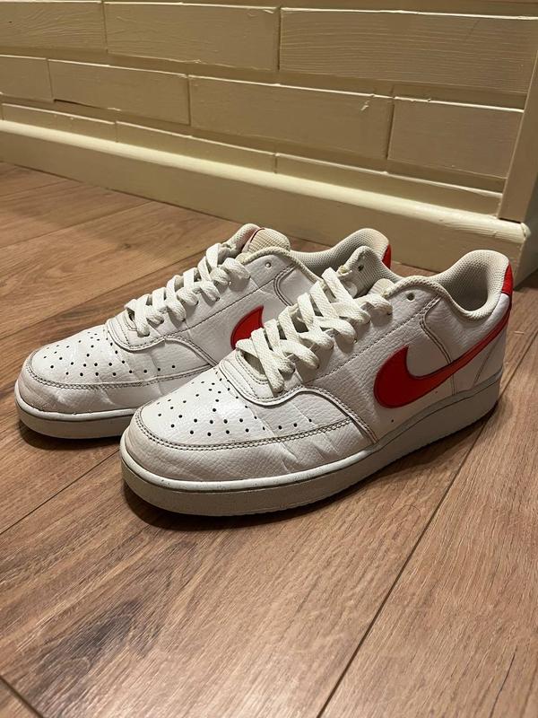 Продам кросівки Nike Стан чудовий, без пошкоджень. Колір — білий із червоним логотипом, виглядають стильно та універсально. Матеріал — натуральна шкіра, зручна посадка, гарно тримають форму. Підошва чиста, взуття доглянуте. Ідеальні для повсякденного носіння. Стан 8,5 з 10