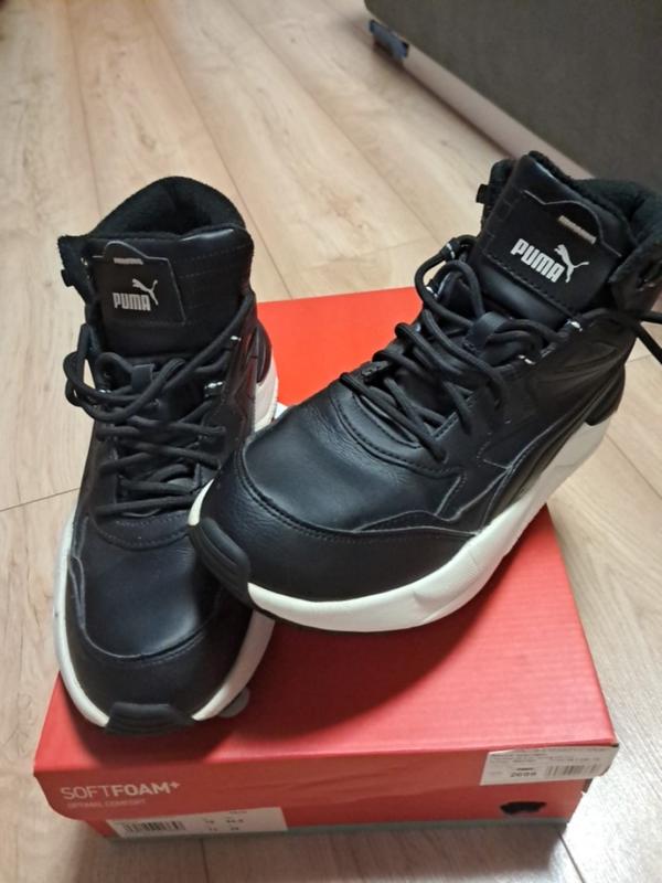 Высокие кроссовки PUMA оригинальные, красивые, теплые, чтан идеальный, принимали без сына, одели два раза,вы появились малые, где-то на ножку на 28 см., принимали за 2700.