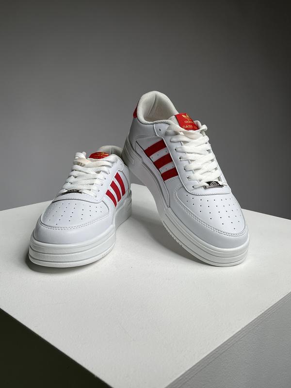 Adidas Adi-Dassler White / Red Adidas Adi-Dassler White / Red — поєднання класичного дизайну та спортивної спадщини бренду Adidas. Модель виконана у чистому білому кольорі з червоними акцентами, що додають образу виразності, але залишаються стриманими та універсальними. Лаконічний силует легко вписується у повсякденний гардероб та підходить як для casual, так і для street-style образів. Комфортна посадка, зручна підошва та якісні матеріали роблять цю модель чудовим вибором на кожен день. Характеристики: • Бренд: Adidas • Модель: Adi-Dassler • Колір: White / Red • Верх: синтетична шкіра / текстиль • Підошва: гума • Унісекс Кеди для тих, хто цінує класику, комфорт і впізнаваний стиль без зайвих деталей.