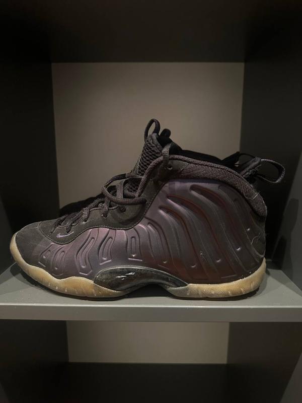 Легендарні баскетбольні кросівки Nike Air Foamposite One в культовому колориті Dark Purple/Black/Gum. Особливості: • Литий корпус Foamposite для максимальної підтримки • Розмір EU 38.5 (24 см) • Оригінальна модель Nike • Міцна гумова підошва • Відмінна фіксація стопи Універсальність: ідеально підходять як для баскетболу, так і для стрітвіру та повсякденного носіння. Стан: б/в, що підтверджує автентичність та історію цієї культової моделі. Колір: темно-фіолетовий з чорними акцентами та натуральною гумовою підошвою.