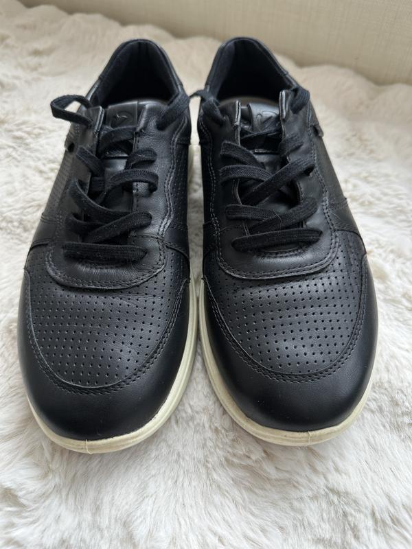 Кожаные кроссовки Ecco Soft 7 ОРИГИНАЛ Есть дополнительные белые шнурки Размер 42 Благодаря анатомически правильной колодке обеспечивается удобная посадка по ноге. - Цвет: черный - Верх – натуральная гладкая кожа - Внутри - текстиль+натуральная кожа - Съемная двухслойная текстильная стелька Comfort Fibre System (CFS) обеспечивают благоприятный микроклимат в течение дня - Имеется пяточный стабилизатор - Застежка - шнуровка - Подошва - 2х-компонентная термополиуретановая, которая очень податлива и может довольно хорошо гнуться.