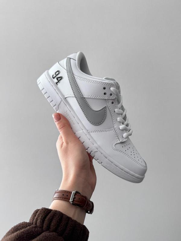Nike SB Dunk Low x Supreme White/Grey 🔵Размеры: 40-45 🔵Артикул: nik-0764 sk 🔵Производитель: Вьетнам 🔵Кожа 🔵Брендовая коробка Nike, упаковочная бумага