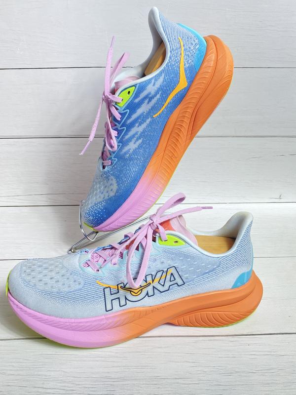 Кросівки Hoka One One Mach 6 - це легка та інноваційна модель, створена для тих, хто цінує швидкість, амортизацію та стиль. Вони ідеально підійдуть як для інтенсивних тренувань, так і для тривалих забігів асфальтом. Верх виконаний з дихаючої інженерної сітки, що забезпечує відмінну вентиляцію та комфорт навіть за високої активності. Нова піна Super Critical Foam у проміжній підошві робить крок м'яким, а повернення енергії помітно потужніше, ніж у попередніх поколіннях Mach. Платформа з технологією Meta-Rocker сприяє плавному перекату стопи та мінімізує навантаження на суглоби. Підошва стійка до зношування та гарантує відмінне зчеплення з поверхнею.(42,5 р 27 см)