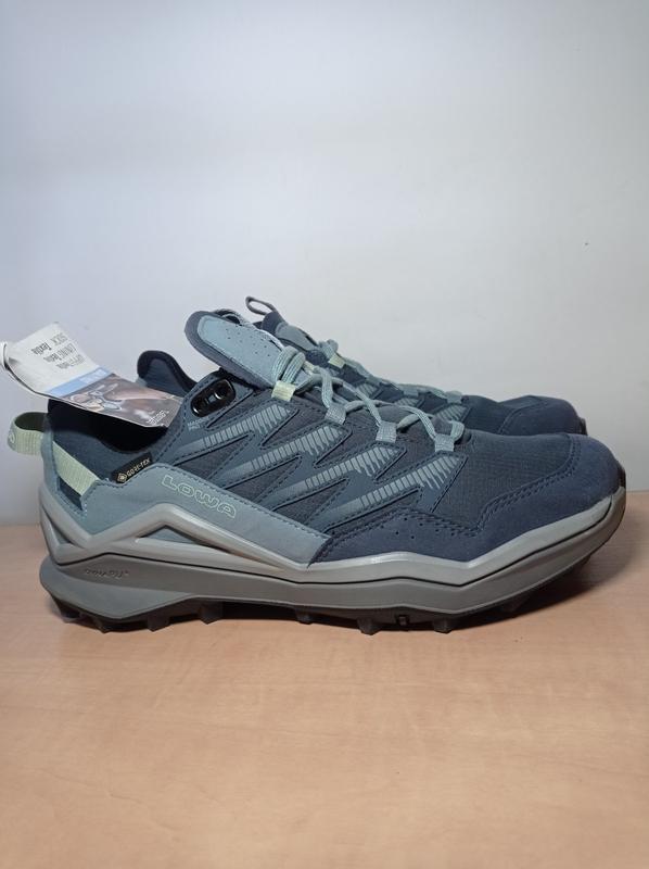 Верх выполнен из текстиля с RipStop-плетением и микрофибры. Такая конструкция делает кроссовки легкими, прочными и приятными при ходьбе. Материал хорошо пропускает воздух, быстро отводит влагу и способствует поддержанию комфортного микроклимата внутри обуви. Он не требует особого ухода и быстро сохнет. Мембрана GORE-TEX обеспечивает высокую водонепроницаемость и воздухопроницаемость обуви, предотвращая проникновение влаги извне, позволяя стопе "дышать", эффективно выводя водяной пар. Поддерживает комфорт и сухость ног при любой погоде, даже при интенсивной активности. Отлично подходят для стопы средней ширины. Модель имеет минимальный уровень жесткости, что обеспечивает высокую гибкость и плавность во время движения. Технология промежуточной подошвы LOWA Monowrap — каркас с трехмерной конструкцией комфортно охватывает стопу и поддерживает ее при движении по неровной поверхности. Легкая и прочная промежуточная подошва LOWA DynaPU из полиуретана сохраняет отличные амортизационные свойства даже после длительного использования. Подошва LOWA Fast Hiking Ws обеспечивает надежное сцепление на разных типах рельефа. Петля на пятке облегчает надевание/распыление кроссовок. Размер 41- стелька 25,6см Новые. Без коробки. Оригинальный! Сток из Европы. Обувь будет качественно упакована для надежной транспортировки.