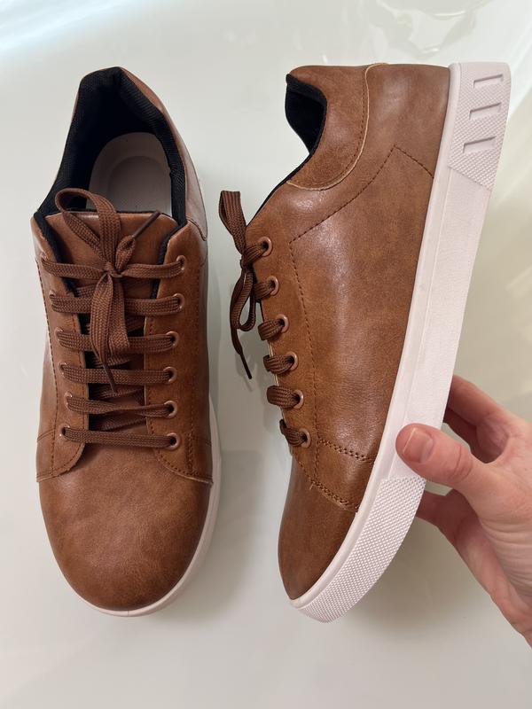 Код: 1466 Чоловічі стильні кеди у класичному коричневому кольорі. Універсальна модель, яка добре поєднується як із джинсами, так і з повсякденними штанами. Верх виконаний з якісного еко-матеріалу під шкіру, що надає взуттю акуратний та сучасний вигляд. М’яка внутрішня підкладка забезпечує комфорт під час ходьби, а міцна світла підошва додає контрасту та гарної амортизації. Ідеальний варіант для щоденного використання. Розмір: 47 Стан: нові Довжина устілки: 29,5 см Ціна: 720 грн