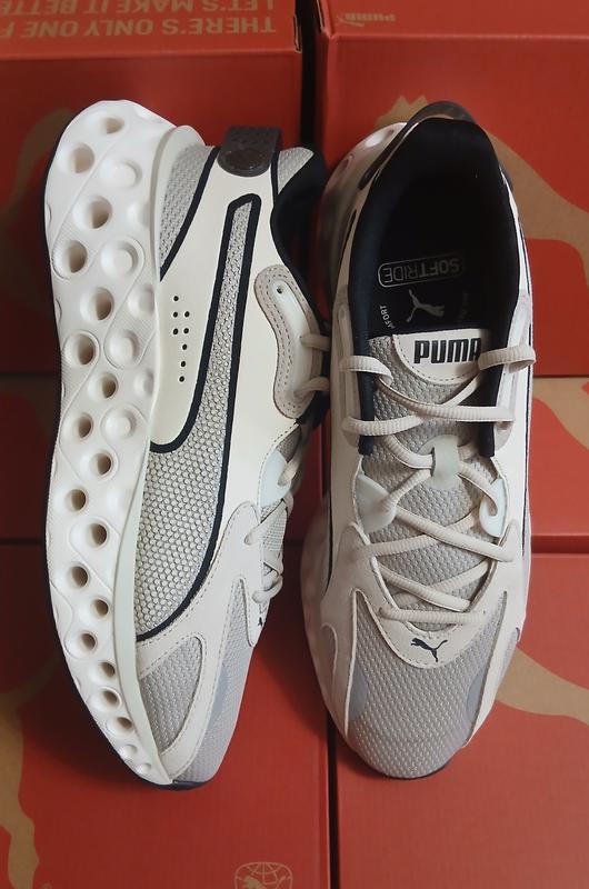 Размеры: 42;44;45;46 Бренд: Puma Цвет: бежевый/черный Модель: SOFTRIDE FREQUENCE Назначение кроссовок: для бега и фитнеса Сезон: весна, лето материал: 60% текстиль, 20% синтетика, 20% кожа