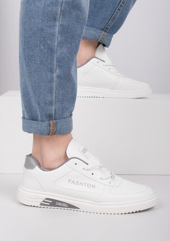 Мужские белые кроссовки с серым задником Материал верха: Экокожа Материал стельки: Текстиль Цвет: Серо-белый Вид застежки: Шнуровка Сезон: Весна/Oсень Страна производитель: Китай Вид упаковки: Коробка Размеры: 40, 41, 42, 43, 44 Ориентировочная размерная сетка: Размер 40: длина стопы 25.5 см, высота подошвы 3 см. Размер 41: длина стопы 26 см, высота подошвы 3 см. Размер 42: длина стопы 26.5 см, высота подошвы 3 см. Размер 43: длина стопы 27 см, высота подошвы 3 см. Размер 44: длина стопы 27.5 см, высота подошвы 3 см.
