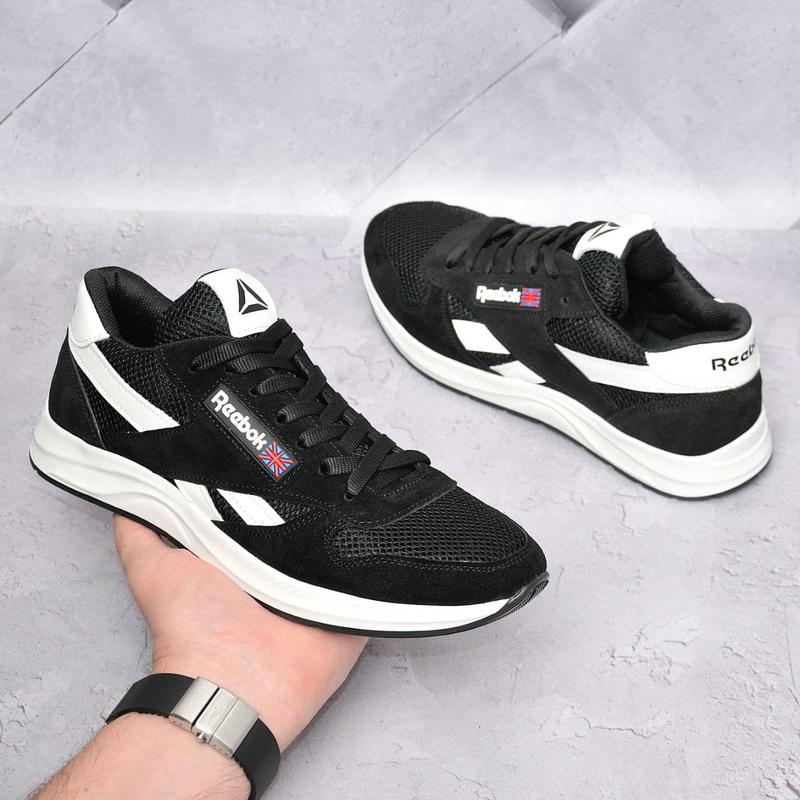 Кроссовки Reebok Retro Black Отличная модель на всё лето, Очень удобные и комфортные. ✔️ верх - комбинация высококачественная сетки и натуральной кожи прослужит не один сезон. 👟 легчайшая подошва полиуретан. 👉🏻 ортопедические, комфортные стельки 💎 размеры 40, 41, 42, 43, 44, 45 40 р - 26 см 41 р - 27 см 42 р - 27.5 см 43 р - 28 см 44 р - 29 см 45 р - 30 см