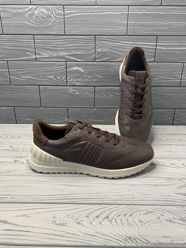 ECCO Astir Lite (50370458290) мужские полуботинки коричневого цвета с белой подошвой и замшевыми вставками. Особенности: · Материал: натуральная кожа · Текстильная подкладка и язычок обеспечивают мягкость и воздухопроницаемость · Подошва: полиуретан · Шнуровка · Съемная кожаная стелька · Литая подошва ECCO FLUIDFORM ™ Direct Comfort повторяет изгибы стопы, обеспечивает легкость походки