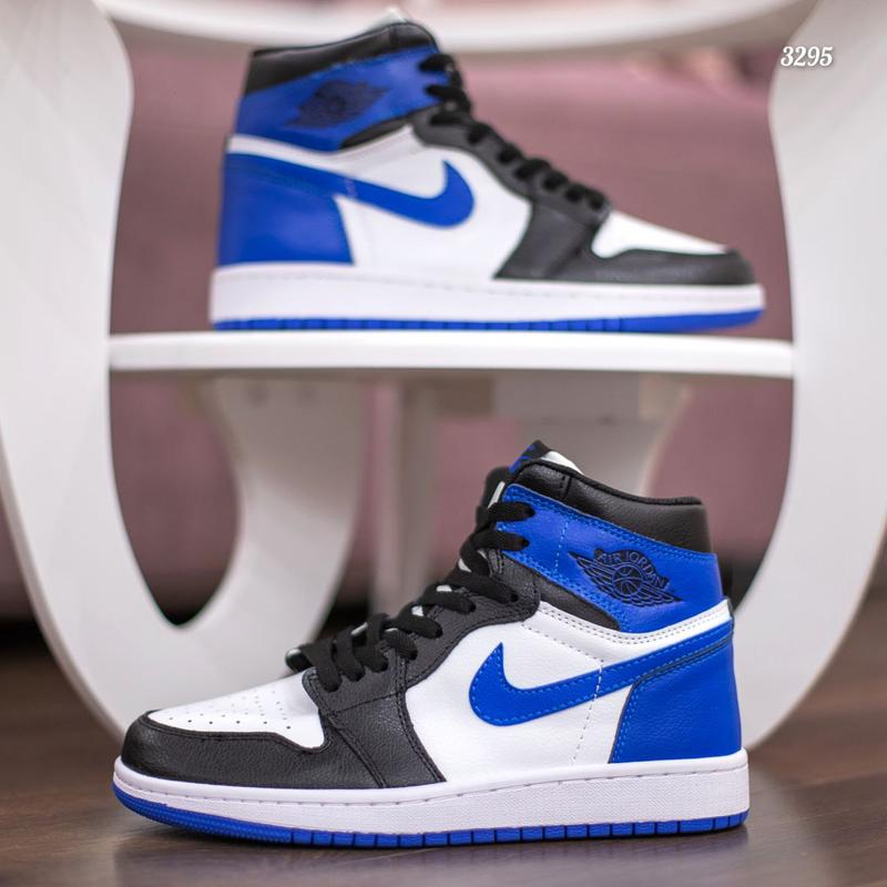 Кроссовки J0rdan 1 Артикул: 3295 (Мужские) • Цвет: белые с синим • Сезон: демисезон • Производитель: Вьетнам • Материал: натуральная кожа, подошва резина, в фирменных коробках + дополнительные голубые шнурки в комплекте. • Размеры: 41-45р 41-26см, 42-26,5см, 43-27,5см, 44-28см, 45-28,5см • Цена 1450 грн