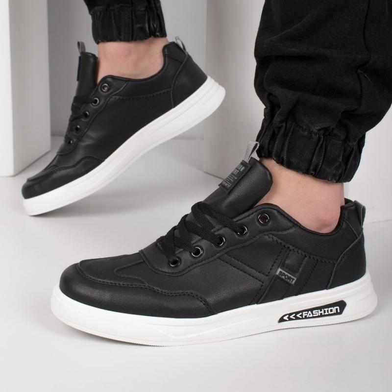Чоловічі чорні кросівки на шнурівці Матеріал верху: Екошкіра Матеріал устілки: Екошкіра Колір: Чорний Вид застібки: Шнурівка Сезон: Весна/Oсінь