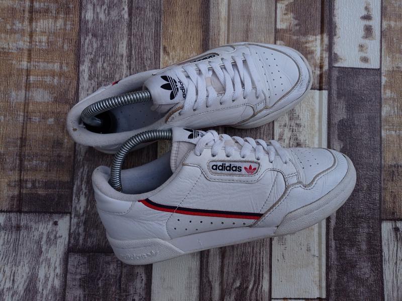 Кроссовки Adidas Continental 80 Размер 38 (стелька 24 см) Состояние на фото, все дефекты указала на фото , можно купить жидкую кожу и убрать потёртости, стелька не родная, на 24 см идеально сядут Натуральная кожа