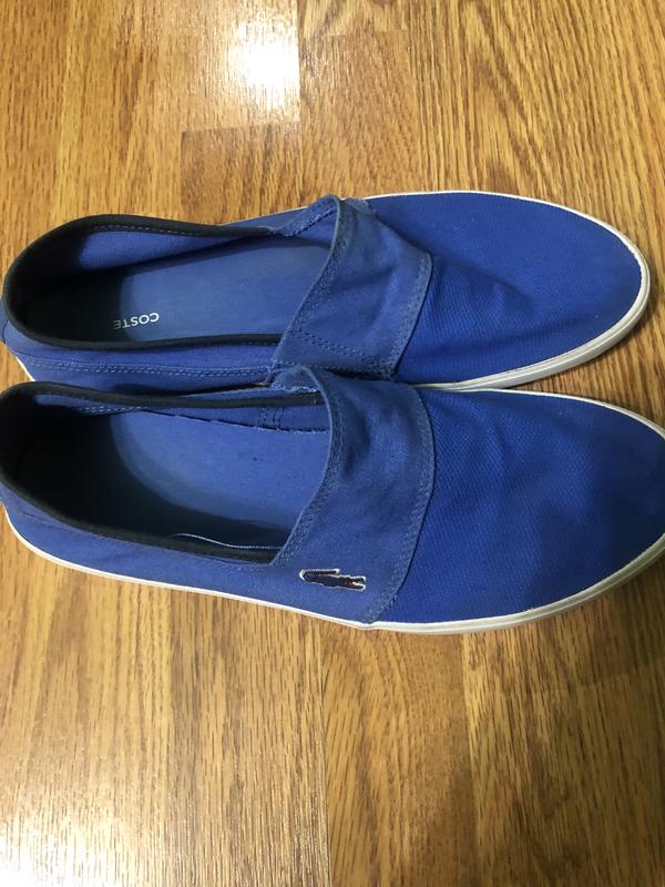 Стан ідеальний Розмір 42 Бренд Lacoste Текстильные летние мужские туфли с джинсовой окантовкой синего цвета. На невысокий подъем по полноте. Размеры: р.42--27,0 см.