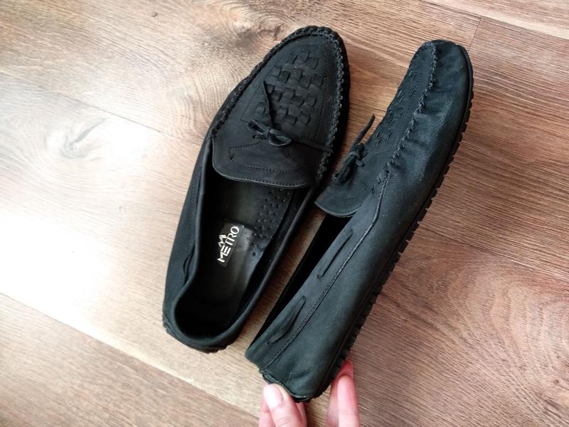 Мокасины мужские. Черный цвет. Нубук. В идеальном состоянии, одевались раз или два. По размеру ориентируйтесь лучше на замеры. Стелька 26,5 см (т.е. это где-то примерно 43-44 грн.) Не узкие, мягкая кожа. Фото немного искажает цвет.