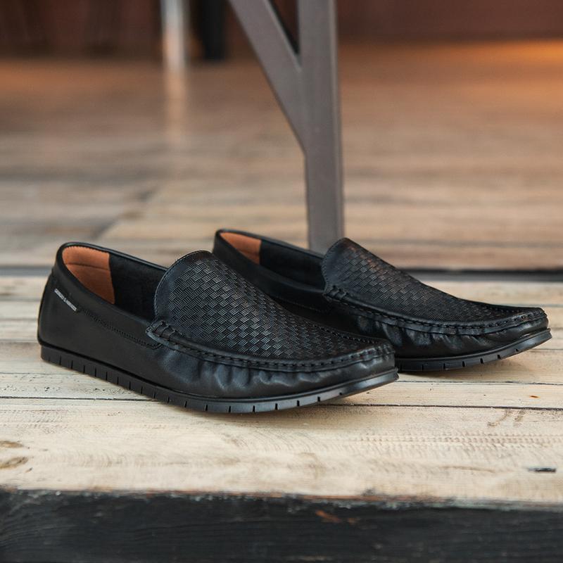 М'які мокасини для чоловіка, чорного кольору. Зроблені з натуральної шкіри зовні та всередині. Оригінальний дизайн та якість в одній парі взуття. Розмірна сітка: 40 - на довжину стопи 26,5 см 41 - на довжину стопи 27 см 42 - на довжину стопи 27,5 см 43 - на довжину стопи 28 см 44 - на довжину стопи 29 см 45 - на довжину стопи 29,5 см Перед оформленням замовленням уточніть чи є ваш розмір у наявності