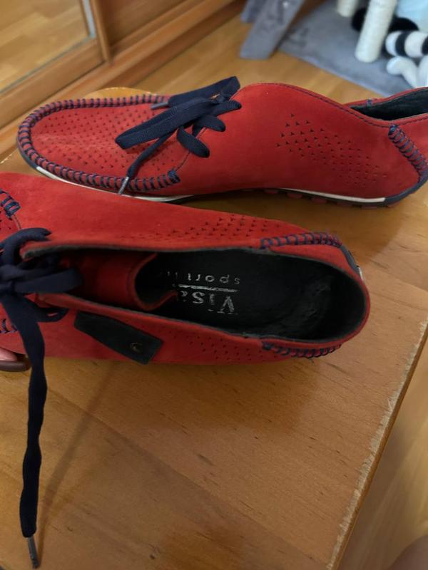 Продаю мужские мокасины красного цвета с темно синими шнурками. Качество хорошее, были одеты несколько раз. Продаю, потому что мужчине больше не нравятся. Размер 40.