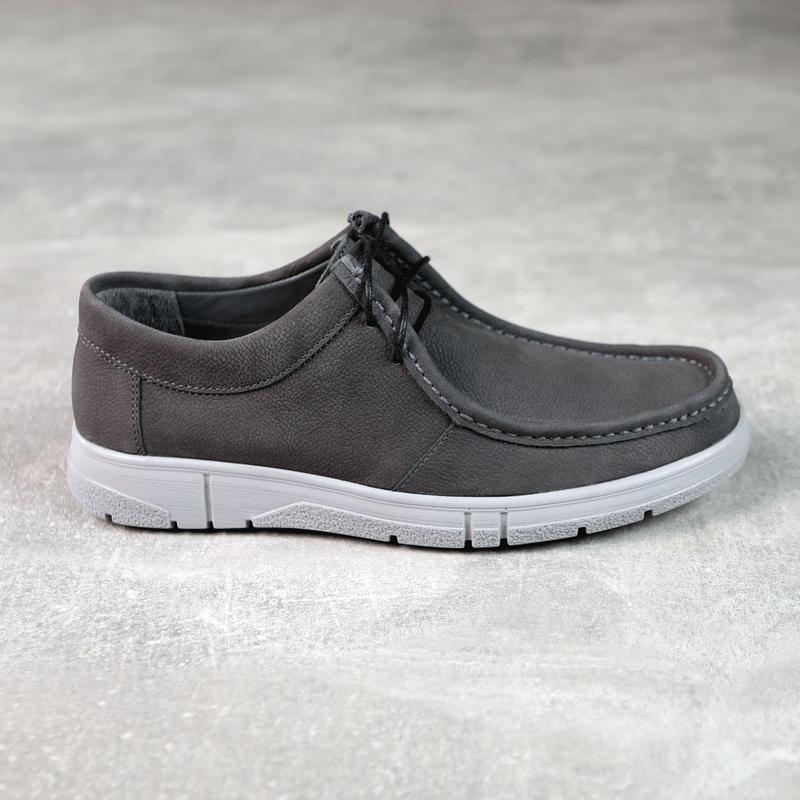 Розмірність моделі: повномірки Верх: натуральна шкіра Підкладка: натуральна шкіра Устілка: шкіряна меморі Підошва: EVA Колір: сірий Виробник: Україна, Харків Розмірна таблиця: Довжина по устілці 40 розмір 26 см 41 розмір 27 см 42 розмір 27,5 см 43 розмір 28 см 44 розмір 28,5 см 45 розмір 29,5 см