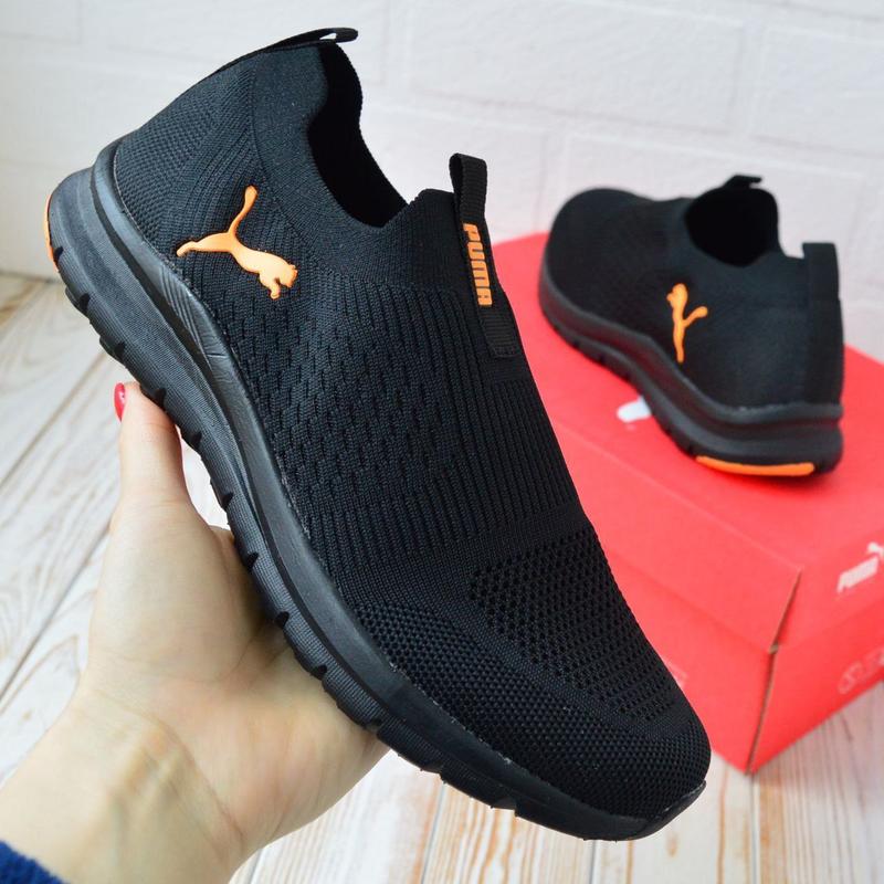 Puma мокасины черные с оранжевым кроссовки мужские легкие весенние летние демисезонные сет...