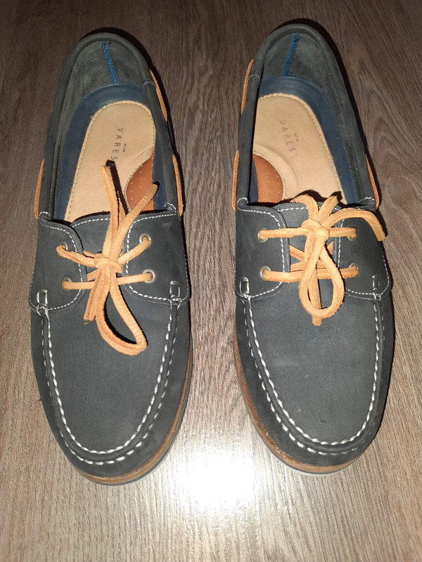 Кожаные туфли-топсайдеры р.41 (указан 10) Стан отличный практически идеальный. Кожа натуральная, мягкая и плотная внутри и снаружи. Длина по стельке 27 см, ширина 9 см.