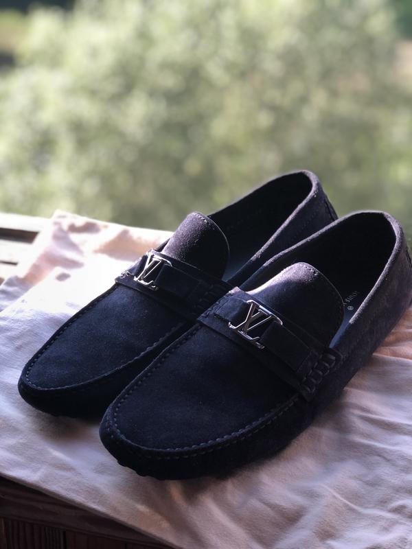 Прекрасные замшевые, темно синего цвета. Оригинал HOCKENHEIM MOCCASIN Louis Vuitton, обуты один раз. Нет следов носки. Дефектов и потёртостей -нет. Есть пыльники и пакет.