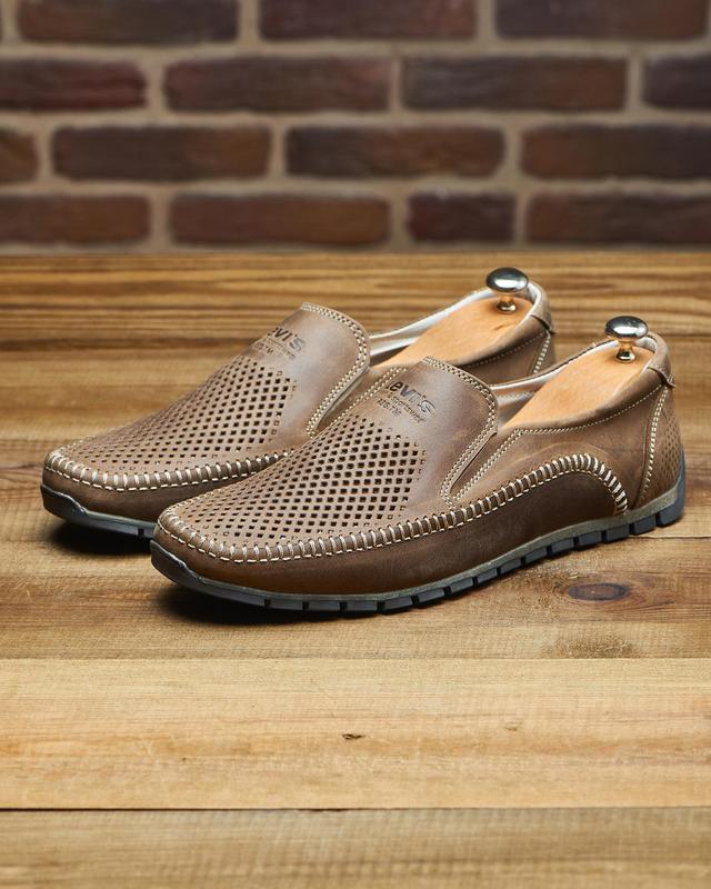 Мужские летние бежевые удобные туфли мокасины кожа перфорация,натуральная перфорированная...