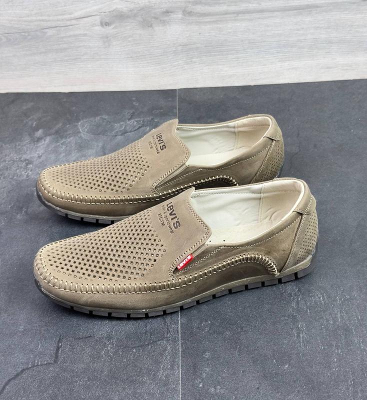 Чоловічі шкіряні мокасини, туфлі літні (перфорація)