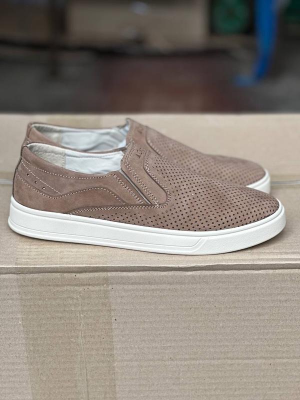 Стильные мужские бежевые летние мокасины с перфорацией, кожаные слипоны перфорация кожа на...