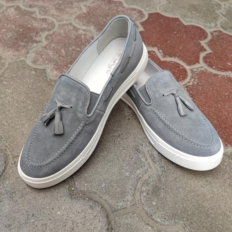 Мужские замшевые серые мокасины из натуральных материалов. Универсальная модель для твоих пожилых образов! Размерная сетка: 41 размер – на стопу 27 см 43 размер – на стопу 28 см Для оформления заказа уточните наличие вашего размера у менеджера магазина.