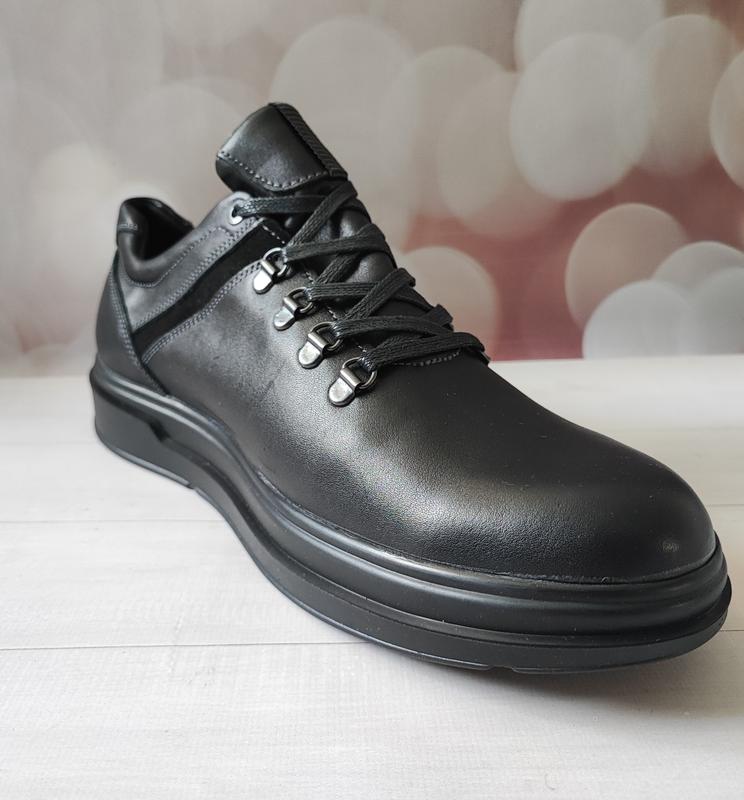 ECCO - чорні шкіряні кросівки - туфлі - кросівки Гарна повномірна колодка. Підходить і на стандартну ногу і для людей з великою повнотою ноги та великим підйомом. М'яка шкіра та відсутність поперечних швів дозволяє комфортно. почуватися в них навіть людям із проблемними ногами (наприклад, якщо болять кісточки на стопі). Шнурівка як на трекінговому черевику дуже надійно фіксує стопу. Товста добротна шкіра – запорука того, що ці туфлі прослужать Вам не один сезон. Товста підошва захистить ногу від промерзання та нерівностей якими рясніють наші дороги. А потужний протектор дозволить впевнено почуватися на будь-яких навіть слизьких поверхнях. Верх взуття виконаний з натуральної шкіри з вологовідштовхувальним покриттям waterproof. Шкіряний язичок захистить ногу від промокання під дощем. Технологія waterproof забезпечить сухість та тепло вашим ногам. Устілка - комбінована (текстиль плюс спінений Ortholite). Матеріал верху : Натуральна шкіра з вологовідштовхувальним покриттям. Підошва: поліуретан Підкладка: текстиль Устілка: текстиль/Ortholite Температурний режим: +20 -5 Сезон: весна – осінь Стан: Нові Доступний колір: чорний Допоможемо підібрати потрібний Вам розмір (По довжині устілки в см) ( устілка знімна ) Розмірна сітка: 40 – 26,5 см. 41 – 27,0 см. 42 – 28,0 см. 43 – 28,5 см. 44 – 29,0 см. 45 – 30,0 см. 46 – 31,0 см. Комфортні туфлі – кросівки топової якості виробництва Харків Найкращий вибір для: весна - осінь. Цю модель можна носити під будь-який стиль одягу. Шикарна модель, безперечно, підкреслить Ваш стиль серед інших людей. Це точно те, що ви шукали. Якість у якому ви почуватиметеся комфортно та впевнено довгі роки.