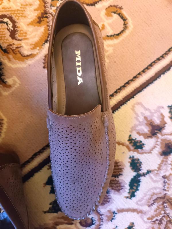 Продам мужские мокасины с перфорацией. Цвет - коричневый (фото не передает). Натуральная замша. Размер 45 полномерный, длина стельки 29.5 см. Легкие и комфортные на ноге. Подошва полиуретан. Фирма MIDA. Жодного разу не одягалися.