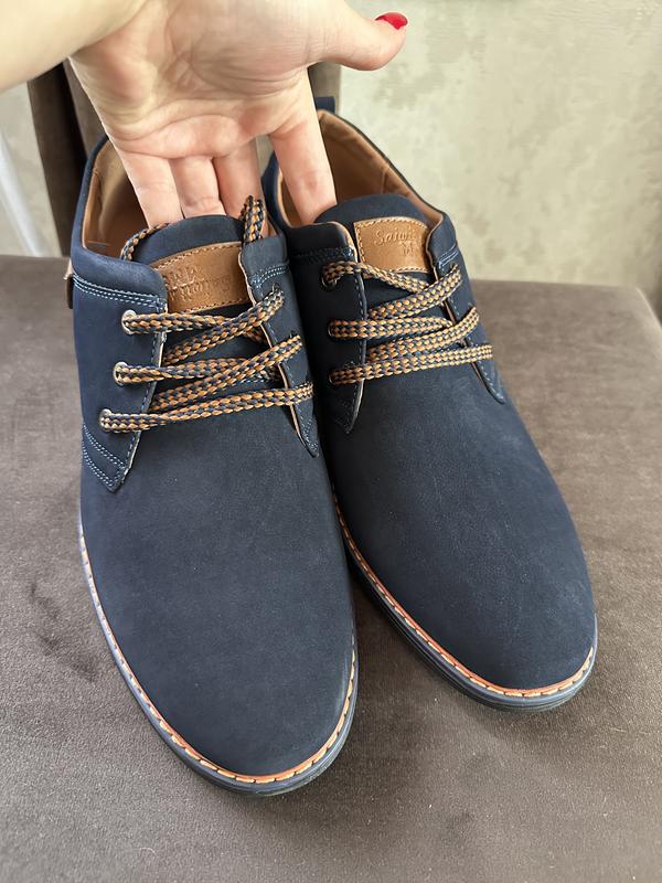 В наличии мужские туфли под нубук, синего цвета. НЕ СКОРОСТЬ!!!! Идут не на широкую ногу! Размеры 46(2шт.), 47(2шт), 48, 49 размеры Замеры: 46-29,7 см 47-30,6 см 48-31,1 см 49 продано