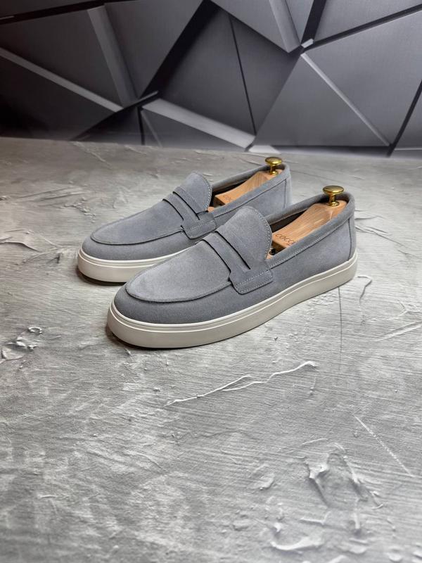 Стильные удобные мужские замшевые серые лоферы мокасины весенние, осенние, лобовидная обув...