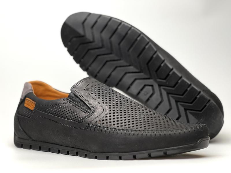 Кожаные мужские мокасины с перфорацией Удобные, стильные, минималистичные мокасины из натуральной кожи, с перфорацией Эта модель прекрасно впишется в вас повседневный гардероб и обеспечит комфорт в течение всего дня. - материал верха: натуральная кожа / нубук; - удобная анатомическая стелька придает дополнительную амортизацию и поддержку стопы; - эластичная и прочная подошва из термополиуретана сочетает в себе гибкость каучука и высокую стойкость к истиранию; - подклад: натуральная кожа; - размеры: 40-45 40 – стелька 26.7 см (стопа 26-26.5 см) 41 – стелька 27.2 см (стопа 26.8-27 см) 42 - стелька 27.7 см (стопа 27.5-27.6 см) 43 - стелька 28.5 см (стопа 28-28.3 см) 44 - стелька 29.2 см (стопа 28.7-29 см) 45 – стелька 29.7 см (стопа 29.3-29.5 см)