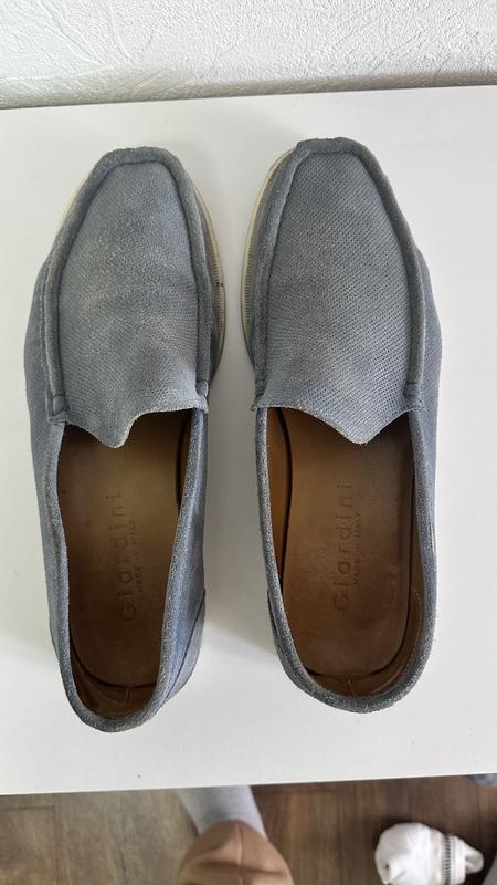 Продаються італійські мокасини Giardini з натуральної замші. Характеристики: • Розмір: 42 • Довжина устілки: 27,5 см • Ширина устілки: 9 см • Матеріал: натуральна замша • Колір: пильно-блакитний • Устілка: шкіряна Стан: Б/у, є дефекти та потертості (видно на фото), довго і якісно служили, і ще послужать. Ціна: 600 грн