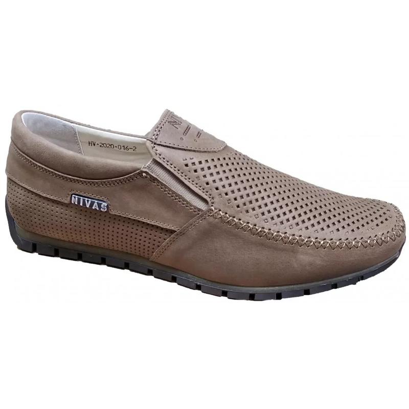 Мужские кожаные мокасины nivas mustang latte нубук коричневые перфорация