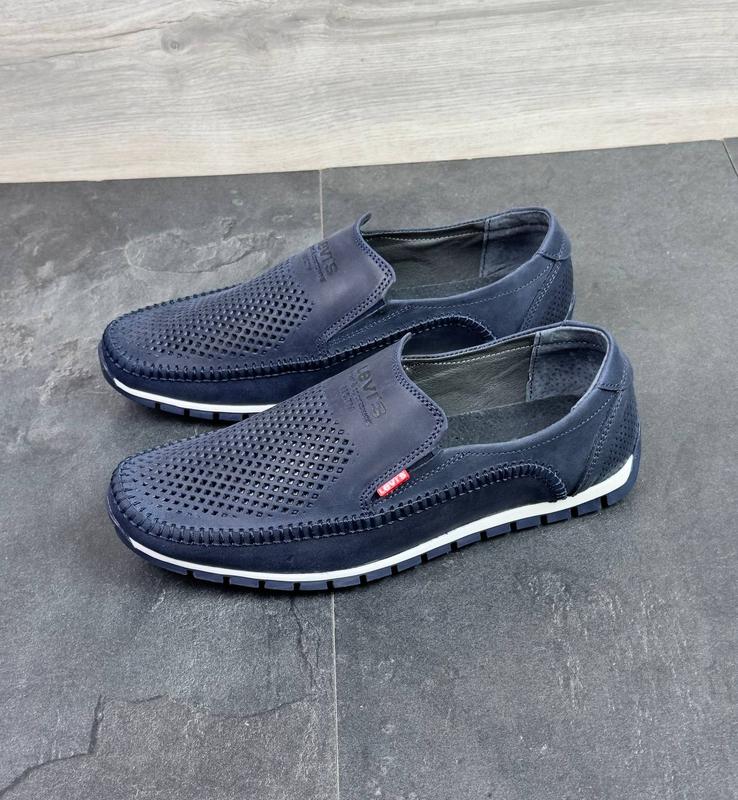 Мужские кожаные мокасины (Перфорация) Код: Lev 4/1 син Сезон: весна/лето Тип: мокасини Цвет - синий Верх: натуральная кожа Середина: натуральная кожа Подошва: полиуретан 40-(26 см) 41-(27 см) 42-(28 см) 43-(28,5 см) 44-(29 см) 45-(30 см) 46-(30,5 см)