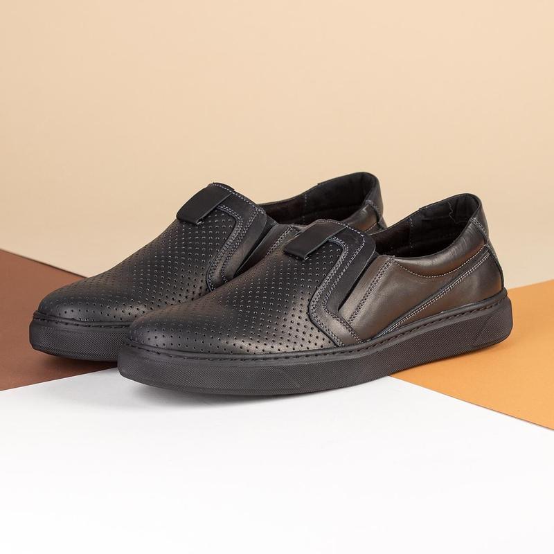 Чоловічі мокасини сліпони туфлі чорні з натуральної шкіри перфорація к-5