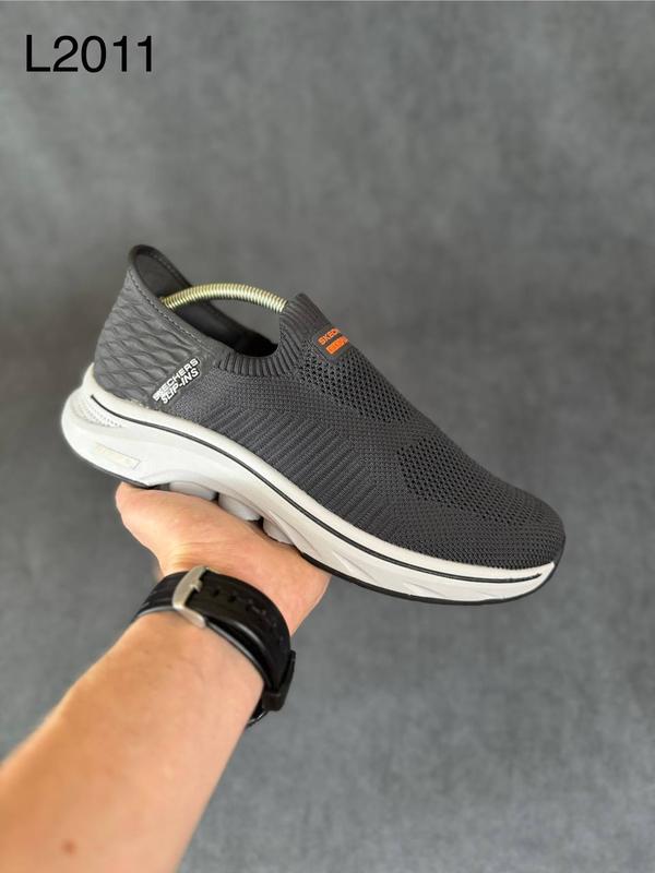 Мужские летние кроссовки мокасины skechers slip-ins go walk темно серые модные кроссовки с...