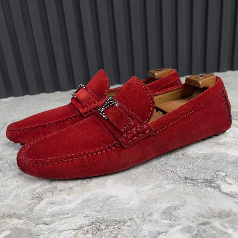 Louis vuitton hockenheim driving slip moccasins red suede мужские мокасины туфли оригинал...